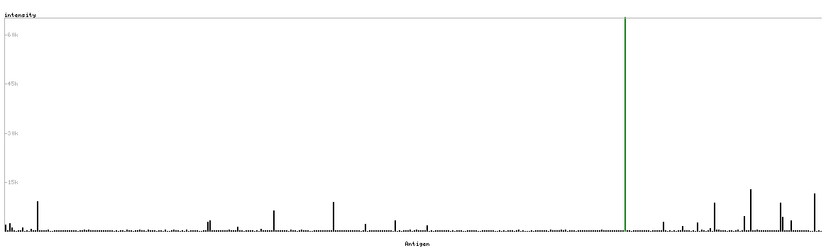 The curve in blue displays the predicted antigenicity i.e. the tendency for different regions of the protein to generate an immune response, with peak regions being predicted to be more antigenic.The curve shows average values based on a sliding window approach using an in-house propensity scale. (read more).