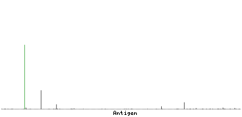 At the top of the view, the position of the antigen (identified by the corresponding HPA identifier) is shown as a green bar. A yellow triangle on the bar indicates a <100% sequence identity to the protein target.