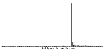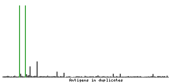 At the top of the view, the position of the antigen (identified by the corresponding HPA identifier) is shown as a green bar. A yellow triangle on the bar indicates a <100% sequence identity to the protein target.