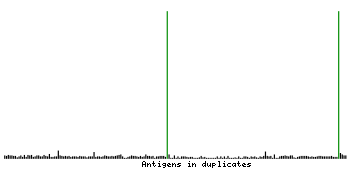 At the top of the view, the position of the antigen (identified by the corresponding HPA identifier) is shown as a green bar. A yellow triangle on the bar indicates a <100% sequence identity to the protein target.