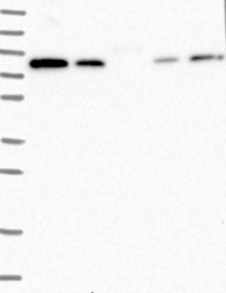 A Western blot analysis is performed on a panel of human tissues and cell lines to evaluate antibody specificity. For antibodies with unreliable result a revalidation using an over-expression lysate is performed.