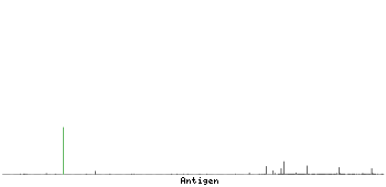 At the top of the view, the position of the antigen (identified by the corresponding HPA identifier) is shown as a green bar. A yellow triangle on the bar indicates a <100% sequence identity to the protein target.