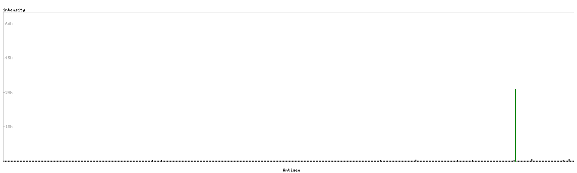 The curve in blue displays the predicted antigenicity i.e. the tendency for different regions of the protein to generate an immune response, with peak regions being predicted to be more antigenic.The curve shows average values based on a sliding window approach using an in-house propensity scale. (read more).
