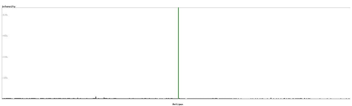 The curve in blue displays the predicted antigenicity i.e. the tendency for different regions of the protein to generate an immune response, with peak regions being predicted to be more antigenic.The curve shows average values based on a sliding window approach using an in-house propensity scale. (read more).