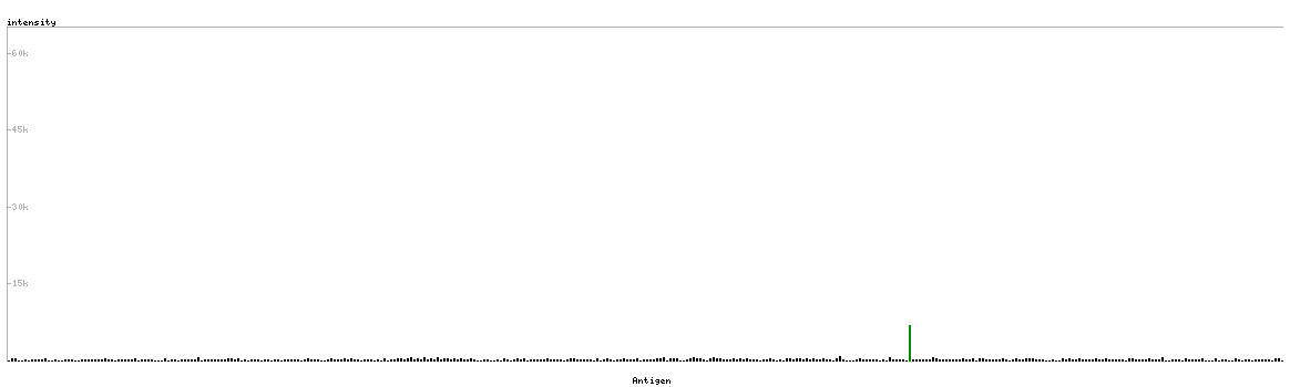At the top of the view, the position of the antigen (identified by the corresponding HPA identifier) is shown as a green bar. A yellow triangle on the bar indicates a <100% sequence identity to the protein target.