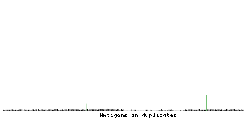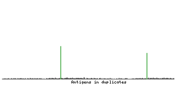 At the top of the view, the position of the antigen (identified by the corresponding HPA identifier) is shown as a green bar. A yellow triangle on the bar indicates a <100% sequence identity to the protein target.