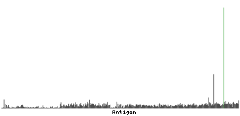 At the top of the view, the position of the antigen (identified by the corresponding HPA identifier) is shown as a green bar. A yellow triangle on the bar indicates a <100% sequence identity to the protein target.