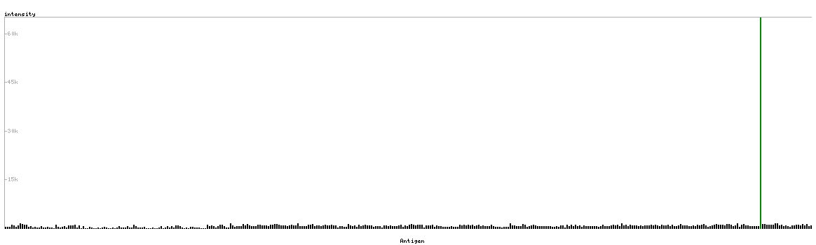 The curve in blue displays the predicted antigenicity i.e. the tendency for different regions of the protein to generate an immune response, with peak regions being predicted to be more antigenic.The curve shows average values based on a sliding window approach using an in-house propensity scale. (read more).