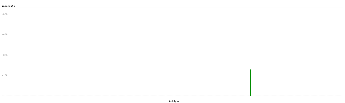 At the top of the view, the position of the antigen (identified by the corresponding HPA identifier) is shown as a green bar. A yellow triangle on the bar indicates a <100% sequence identity to the protein target.