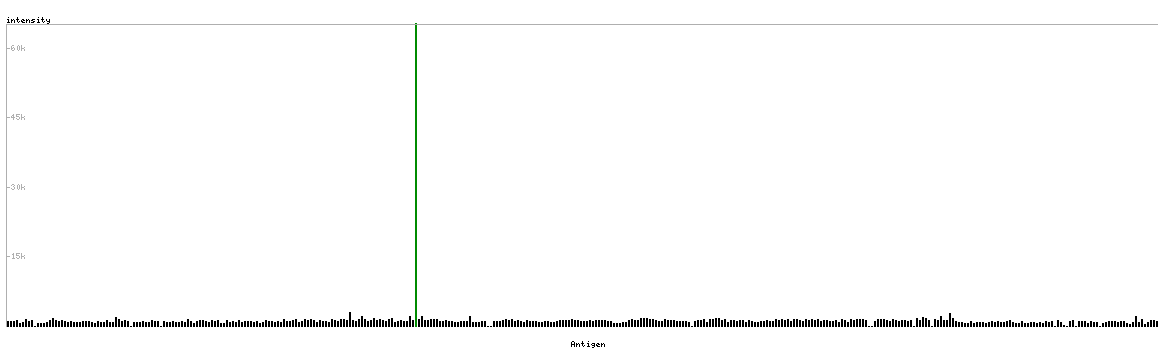 The curve in blue displays the predicted antigenicity i.e. the tendency for different regions of the protein to generate an immune response, with peak regions being predicted to be more antigenic.The curve shows average values based on a sliding window approach using an in-house propensity scale. (read more).