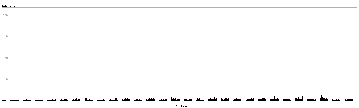 The curve in blue displays the predicted antigenicity i.e. the tendency for different regions of the protein to generate an immune response, with peak regions being predicted to be more antigenic.The curve shows average values based on a sliding window approach using an in-house propensity scale. (read more).