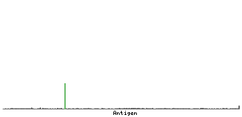 At the top of the view, the position of the antigen (identified by the corresponding HPA identifier) is shown as a green bar. A yellow triangle on the bar indicates a <100% sequence identity to the protein target.