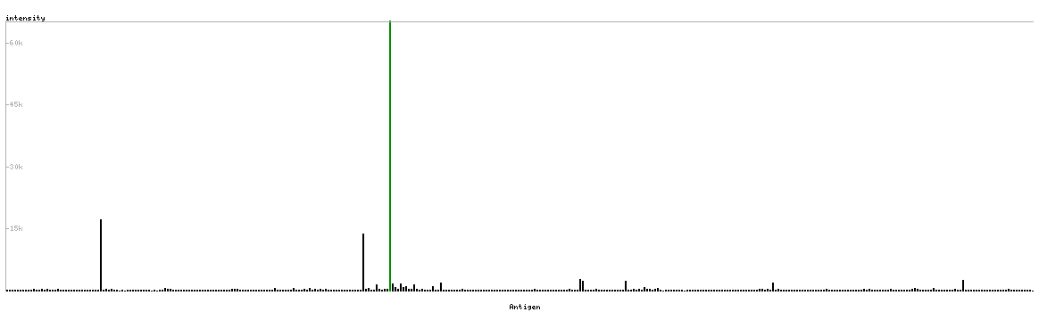 The curve in blue displays the predicted antigenicity i.e. the tendency for different regions of the protein to generate an immune response, with peak regions being predicted to be more antigenic.The curve shows average values based on a sliding window approach using an in-house propensity scale. (read more).
