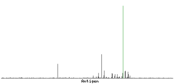 The curve in blue displays the predicted antigenicity i.e. the tendency for different regions of the protein to generate an immune response, with peak regions being predicted to be more antigenic.The curve shows average values based on a sliding window approach using an in-house propensity scale. (read more).