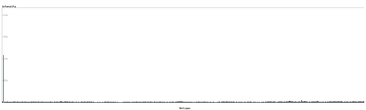 The curve in blue displays the predicted antigenicity i.e. the tendency for different regions of the protein to generate an immune response, with peak regions being predicted to be more antigenic.The curve shows average values based on a sliding window approach using an in-house propensity scale. (read more).