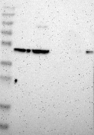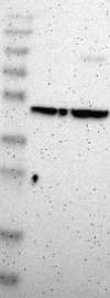 A Western blot analysis is performed on a panel of human tissues and cell lines to evaluate antibody specificity. For antibodies with unreliable result a revalidation using an over-expression lysate is performed.