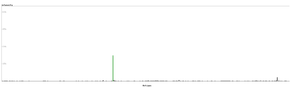 The curve in blue displays the predicted antigenicity i.e. the tendency for different regions of the protein to generate an immune response, with peak regions being predicted to be more antigenic.The curve shows average values based on a sliding window approach using an in-house propensity scale. (read more).