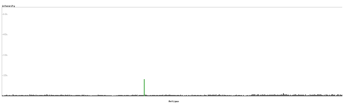 The curve in blue displays the predicted antigenicity i.e. the tendency for different regions of the protein to generate an immune response, with peak regions being predicted to be more antigenic.The curve shows average values based on a sliding window approach using an in-house propensity scale. (read more).