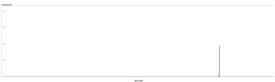 The curve in blue displays the predicted antigenicity i.e. the tendency for different regions of the protein to generate an immune response, with peak regions being predicted to be more antigenic.The curve shows average values based on a sliding window approach using an in-house propensity scale. (read more).