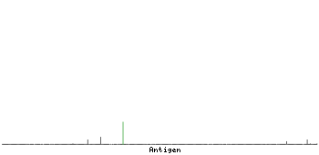 At the top of the view, the position of the antigen (identified by the corresponding HPA identifier) is shown as a green bar. A yellow triangle on the bar indicates a <100% sequence identity to the protein target.