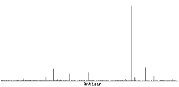 The curve in blue displays the predicted antigenicity i.e. the tendency for different regions of the protein to generate an immune response, with peak regions being predicted to be more antigenic.The curve shows average values based on a sliding window approach using an in-house propensity scale. (read more).