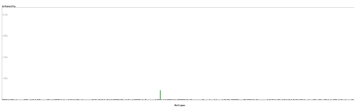 At the top of the view, the position of the antigen (identified by the corresponding HPA identifier) is shown as a green bar. A yellow triangle on the bar indicates a <100% sequence identity to the protein target.