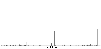 The curve in blue displays the predicted antigenicity i.e. the tendency for different regions of the protein to generate an immune response, with peak regions being predicted to be more antigenic.The curve shows average values based on a sliding window approach using an in-house propensity scale. (read more).