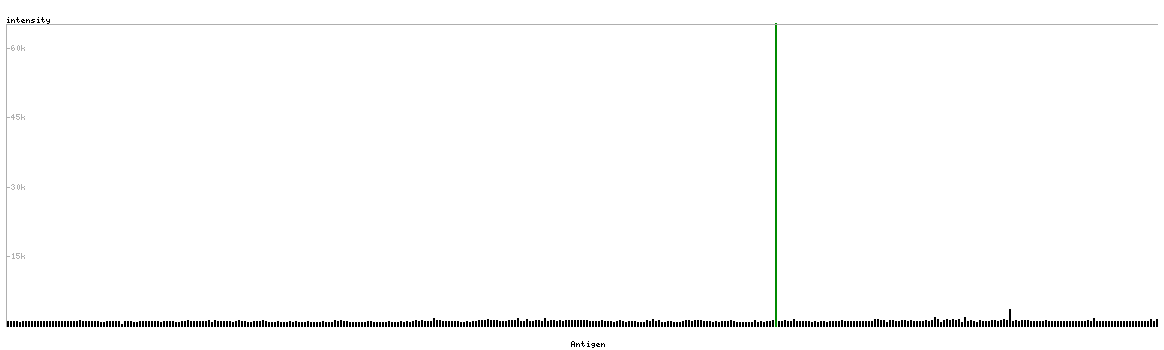 The curve in blue displays the predicted antigenicity i.e. the tendency for different regions of the protein to generate an immune response, with peak regions being predicted to be more antigenic.The curve shows average values based on a sliding window approach using an in-house propensity scale. (read more).
