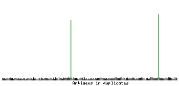 At the top of the view, the position of the antigen (identified by the corresponding HPA identifier) is shown as a green bar. A yellow triangle on the bar indicates a <100% sequence identity to the protein target.
