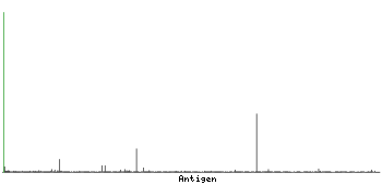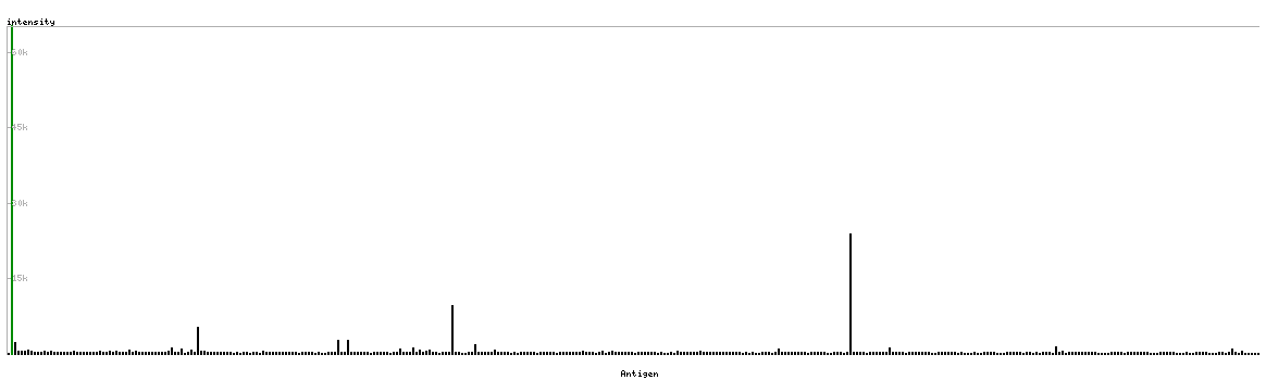 The curve in blue displays the predicted antigenicity i.e. the tendency for different regions of the protein to generate an immune response, with peak regions being predicted to be more antigenic.The curve shows average values based on a sliding window approach using an in-house propensity scale. (read more).
