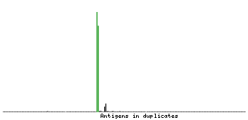 At the top of the view, the position of the antigen (identified by the corresponding HPA identifier) is shown as a green bar. A yellow triangle on the bar indicates a <100% sequence identity to the protein target.