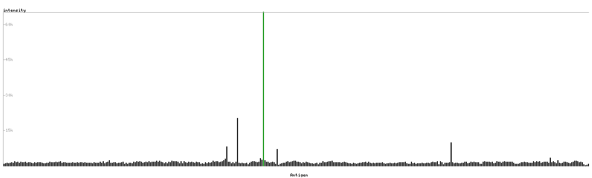 The curve in blue displays the predicted antigenicity i.e. the tendency for different regions of the protein to generate an immune response, with peak regions being predicted to be more antigenic.The curve shows average values based on a sliding window approach using an in-house propensity scale. (read more).