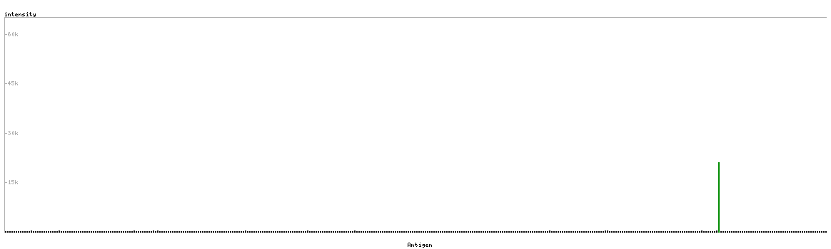 At the top of the view, the position of the antigen (identified by the corresponding HPA identifier) is shown as a green bar. A yellow triangle on the bar indicates a <100% sequence identity to the protein target.