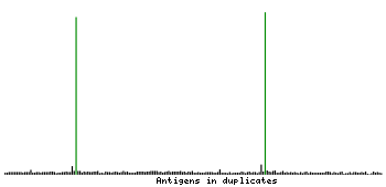 At the top of the view, the position of the antigen (identified by the corresponding HPA identifier) is shown as a green bar. A yellow triangle on the bar indicates a <100% sequence identity to the protein target.