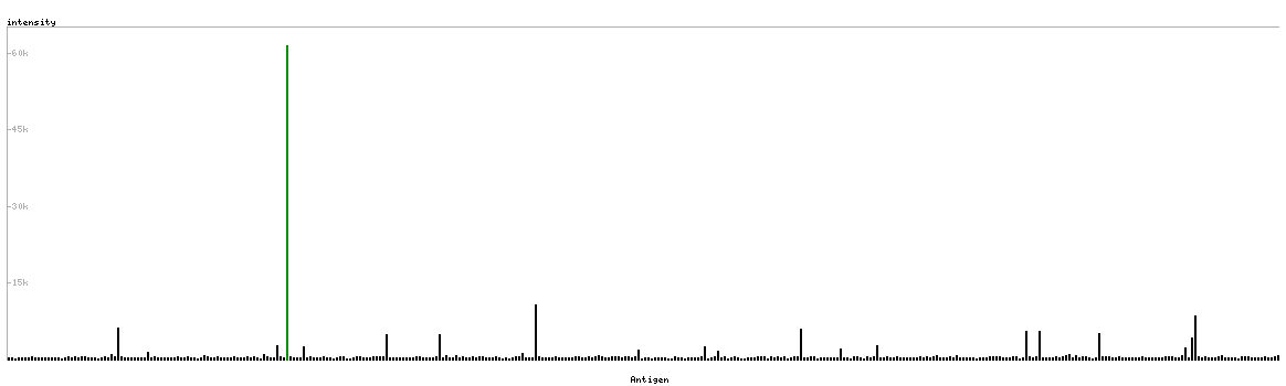 The curve in blue displays the predicted antigenicity i.e. the tendency for different regions of the protein to generate an immune response, with peak regions being predicted to be more antigenic.The curve shows average values based on a sliding window approach using an in-house propensity scale. (read more).