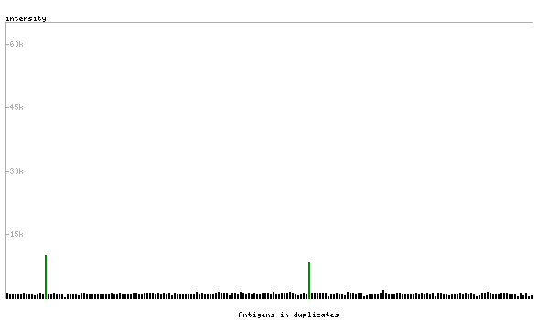 Below the antigens, the maximum percent sequence identity of the protein to all other proteins from other human genes is displayed, using a sliding window of 10 aa residues (HsID 10) or 50 aa residues (HsID 50). The region with the lowest possible identity is always selected for antigen design, with a maximum identity of 60% allowed for designing a single-target antigen (read more).