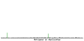 At the top of the view, the position of the antigen (identified by the corresponding HPA identifier) is shown as a green bar. A yellow triangle on the bar indicates a <100% sequence identity to the protein target.