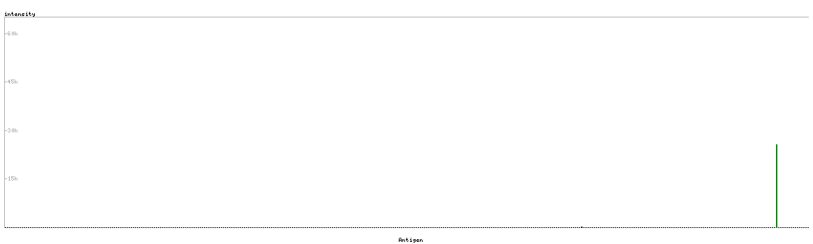 Single band larger than predicted size in kDa (+20%) but partly supported by experimental and/or bioinformatic data. Analysis performed using a standard panel of samples.