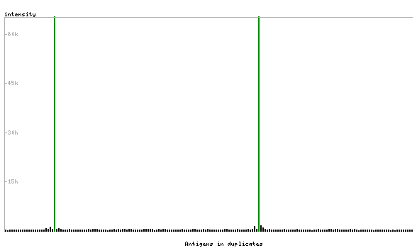 The curve in blue displays the predicted antigenicity i.e. the tendency for different regions of the protein to generate an immune response, with peak regions being predicted to be more antigenic.The curve shows average values based on a sliding window approach using an in-house propensity scale. (read more).