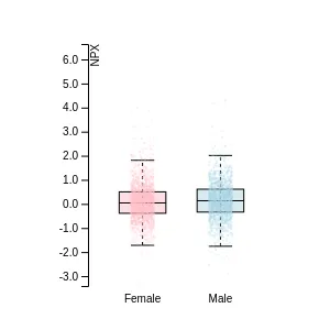 A gene is classified as upregulated in a disease if the average concentration of all samples of that disease is significantly higher (adj P-value<0.005 and NPX difference>=1) than the average concentration of samples of all diseases as measured by PEA . For gender specific diseases the analysis includes only samples corresponding to the same gender from the other diseases.