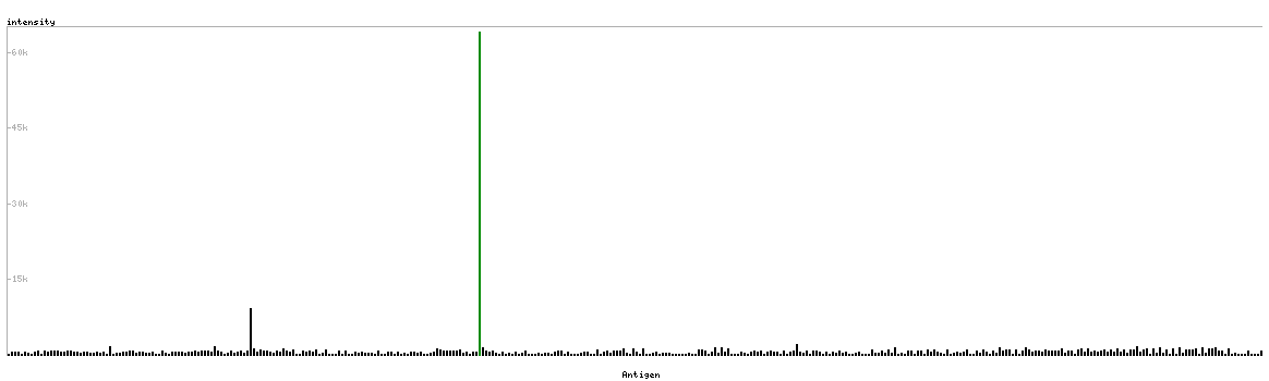 The curve in blue displays the predicted antigenicity i.e. the tendency for different regions of the protein to generate an immune response, with peak regions being predicted to be more antigenic.The curve shows average values based on a sliding window approach using an in-house propensity scale. (read more).