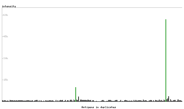 The curve in blue displays the predicted antigenicity i.e. the tendency for different regions of the protein to generate an immune response, with peak regions being predicted to be more antigenic.The curve shows average values based on a sliding window approach using an in-house propensity scale. (read more).