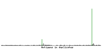 At the top of the view, the position of the antigen (identified by the corresponding HPA identifier) is shown as a green bar. A yellow triangle on the bar indicates a <100% sequence identity to the protein target.