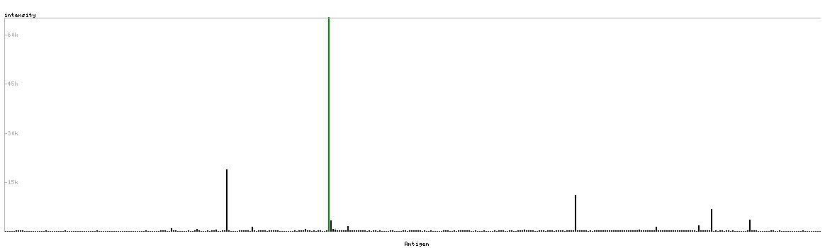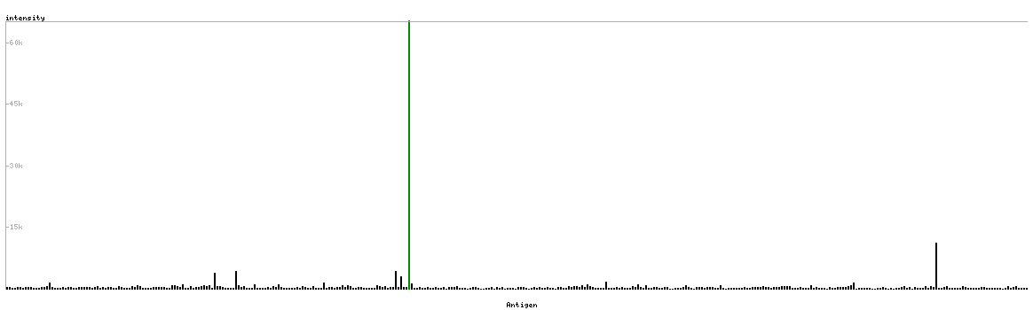 The curve in blue displays the predicted antigenicity i.e. the tendency for different regions of the protein to generate an immune response, with peak regions being predicted to be more antigenic.The curve shows average values based on a sliding window approach using an in-house propensity scale. (read more).