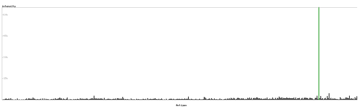 The curve in blue displays the predicted antigenicity i.e. the tendency for different regions of the protein to generate an immune response, with peak regions being predicted to be more antigenic.The curve shows average values based on a sliding window approach using an in-house propensity scale. (read more).