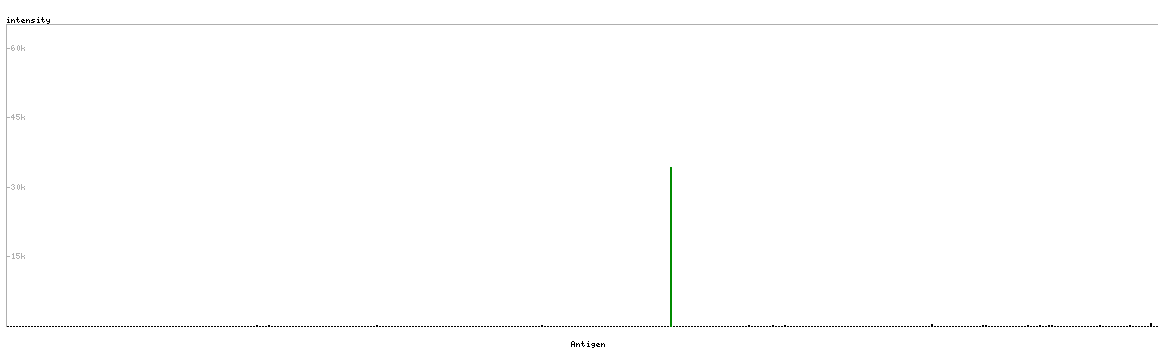 The curve in blue displays the predicted antigenicity i.e. the tendency for different regions of the protein to generate an immune response, with peak regions being predicted to be more antigenic.The curve shows average values based on a sliding window approach using an in-house propensity scale. (read more).