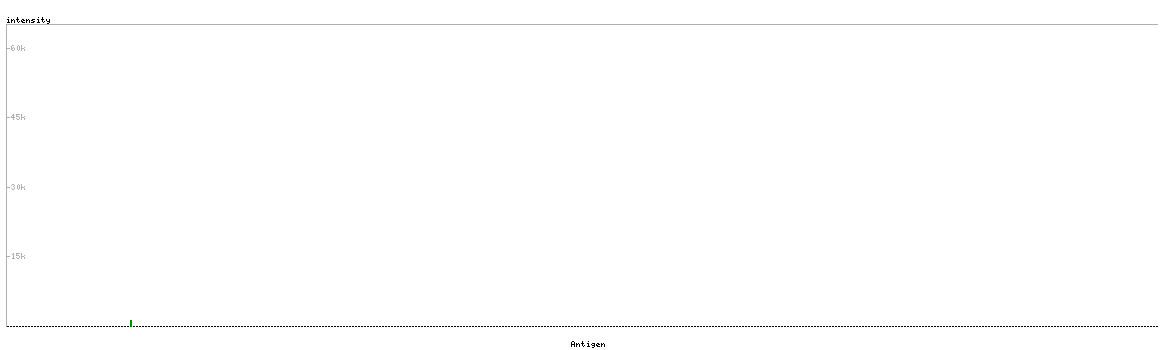 At the top of the view, the position of the antigen (identified by the corresponding HPA identifier) is shown as a green bar. A yellow triangle on the bar indicates a <100% sequence identity to the protein target.