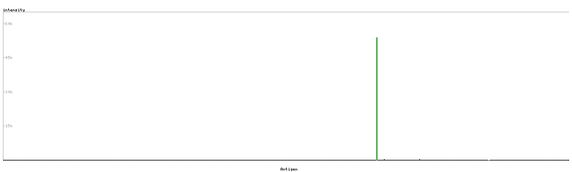 At the top of the view, the position of the antigen (identified by the corresponding HPA identifier) is shown as a green bar. A yellow triangle on the bar indicates a <100% sequence identity to the protein target.