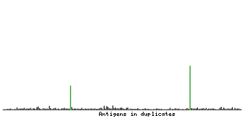 At the top of the view, the position of the antigen (identified by the corresponding HPA identifier) is shown as a green bar. A yellow triangle on the bar indicates a <100% sequence identity to the protein target.