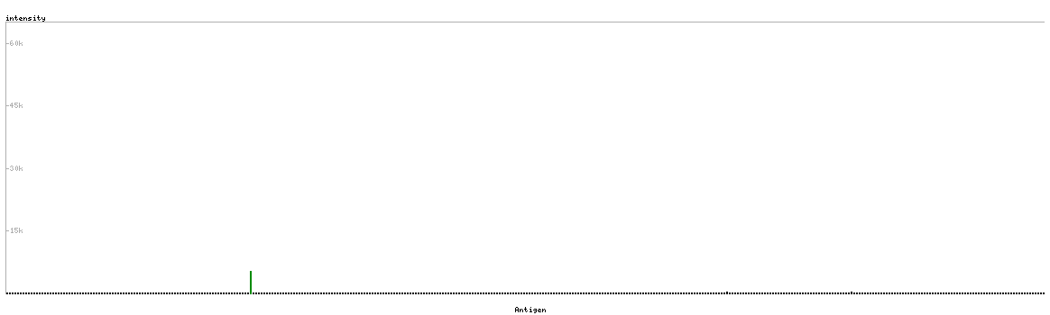 At the top of the view, the position of the antigen (identified by the corresponding HPA identifier) is shown as a green bar. A yellow triangle on the bar indicates a <100% sequence identity to the protein target.
